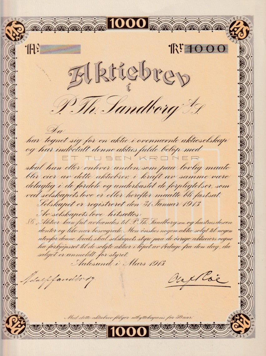 P.H. SANDBERG - AALESUND ( ÅLESUND) 1913